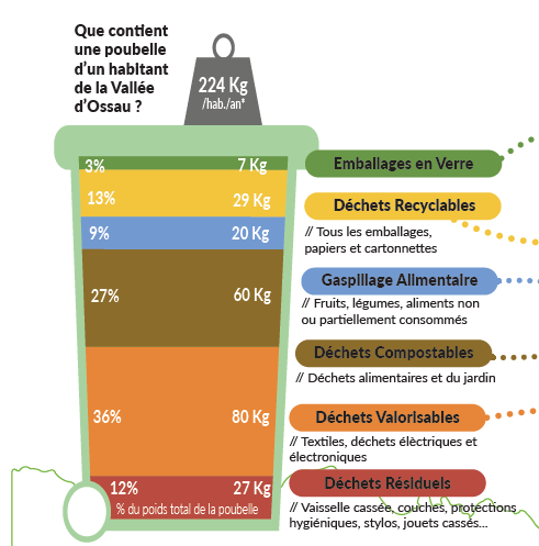 La CC collecte chaque année plus de 2200 tonnes d’ordures ménagères (2234 en 2024) soit 225 kg par habitant et par an (en baisse de 11% par rapport à 2022).